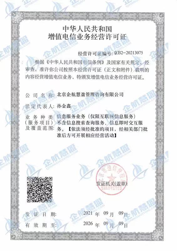 北京企航慧盈信息技術有限公司成立于2021年,是一家專注于增值電信、SP運營、互聯網經營等領域企業,總部及運營中心設立于首都北京,并在全國各地設有分支機構。公司技術實力雄厚,超十萬業務成功案例,行業口碑廣受各界認可。